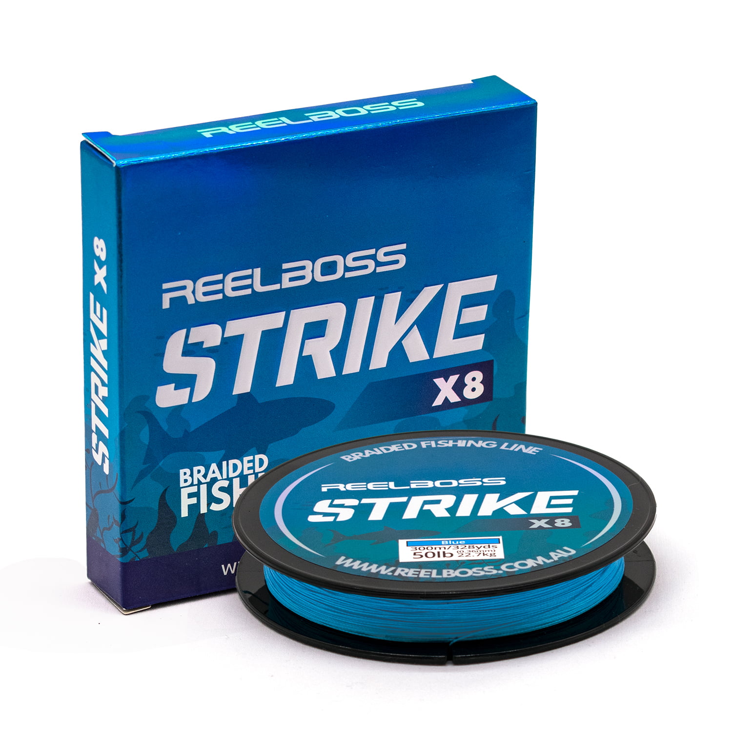 INTRODUCING THE REFINED BLUE 8 STRAND BRAID FISHING LINE: Dive deep into the ReelBoss Strike x8 experience. Featuring a stunning Blue finish, our 8-strand braid is tailored to the discerning angler’s desires.